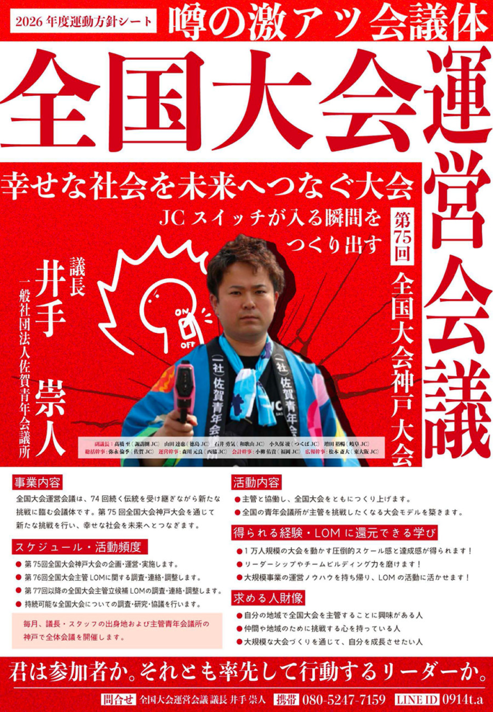 横浜JCは2026年においても多くの出向者を排出することから、出向者にスポットを当てることで出向に対する理解を深め、活動環境整備の必要性を認識すること。 - フォーラム・セミナー等への参加を通じた学び