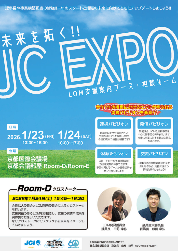 - 13:00〜16:00 LOM支援案内ブース・相談ルーム「JC EXPO」