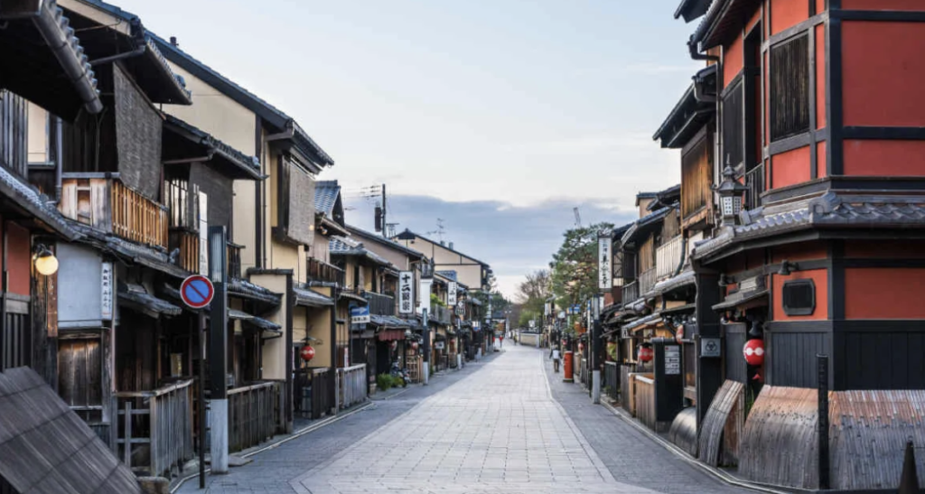 - 京都らしい石畳の道が続く花街